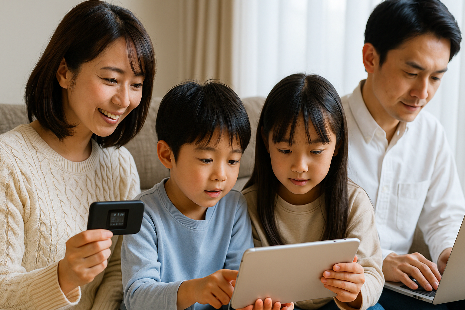 家族構成やライフスタイルによって、必要な機能や使いやすさは異なります。ここでは、家族の暮らしの中でよくあるシチュエーションごとに、特に相性のよいポケットWi-Fiを紹介します。